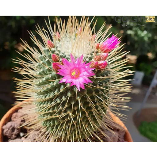 این کاکتوس یکی از زیباترین کاکتوسهای گلدار است که توجه بسیاری از افراد را به خود جلب میکند. خارهای آن بسیار بلند بوده و به صورت فرفری رشد میکنند. روی این خارهای فرفری گلهای جذاب صورتی که اندازه بزرگی دارند رشد میکنند و شکل و شمایلی خواستنی را به وجود میآورند.